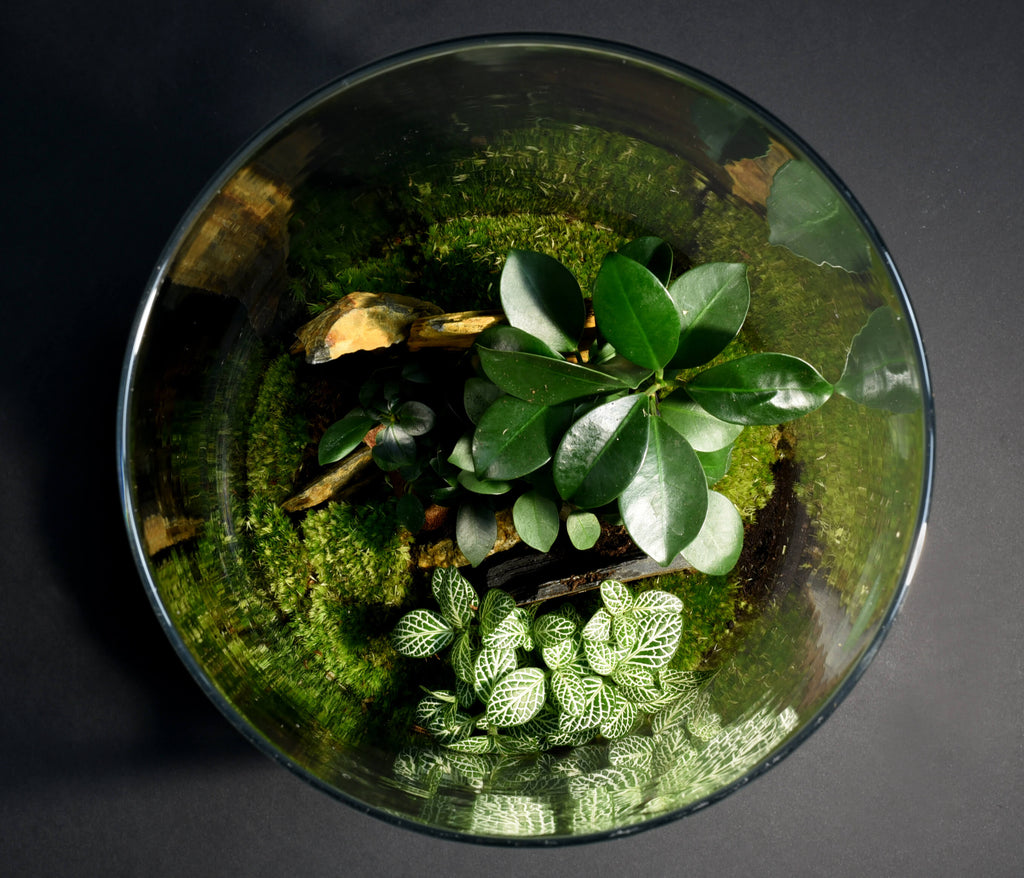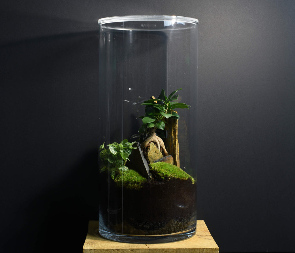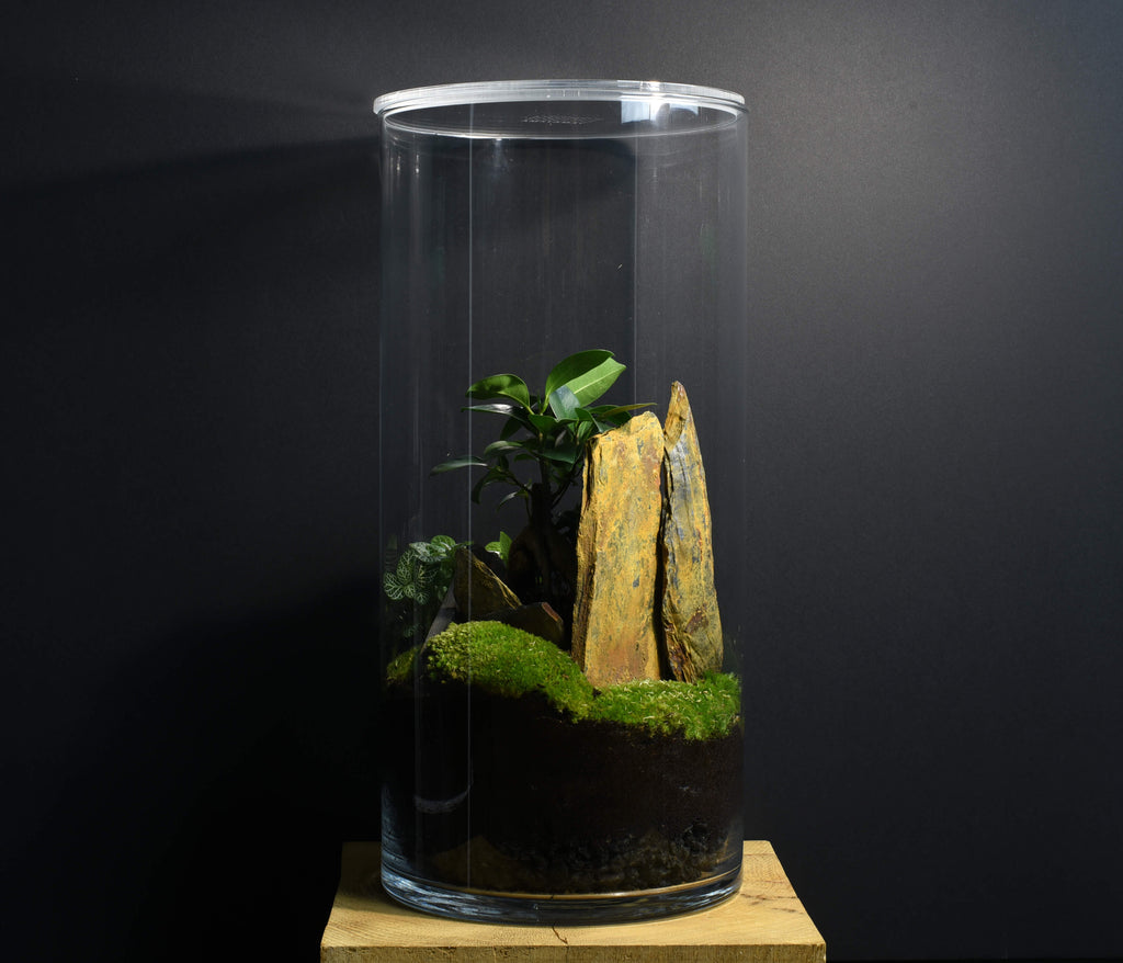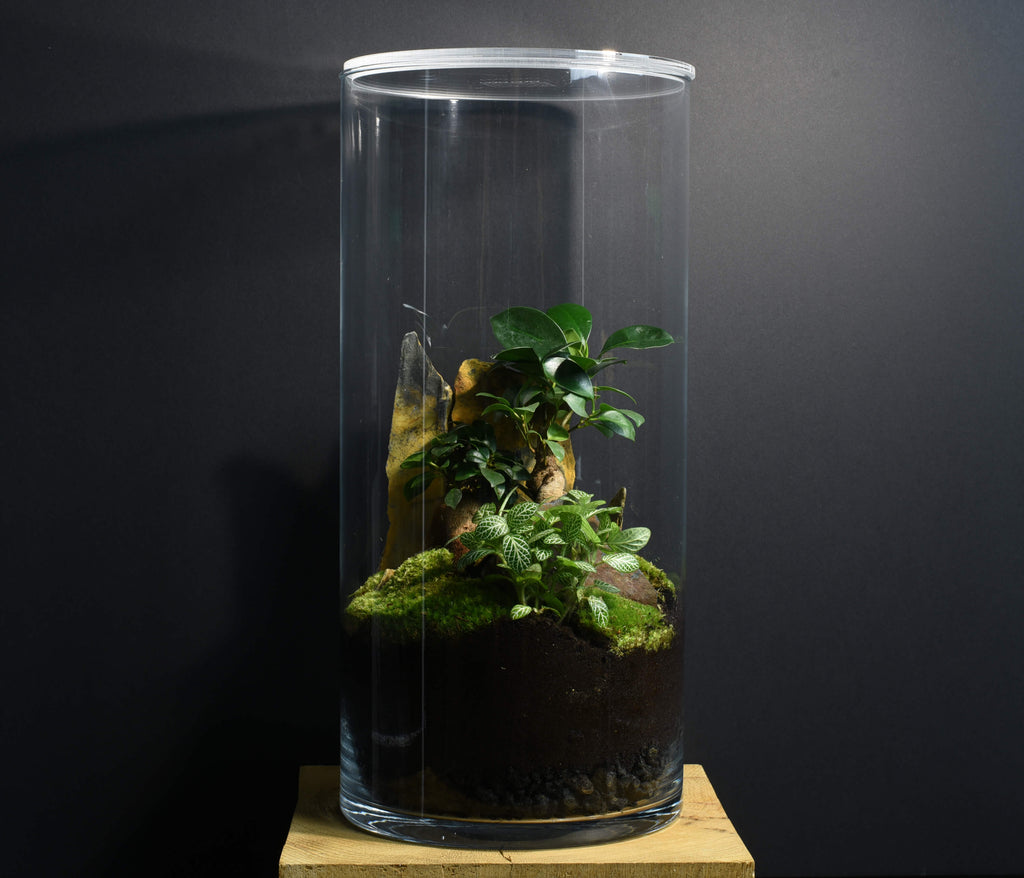 Cette gamme de terrarium est adaptée à une position centrale dans votre intérieur, dans votre salon par exemple avec un éclairage de proximité orienté vers lui, donnant un vif éclat aux nuances infinies de verts de la mousse et des feuillages des végétaux.