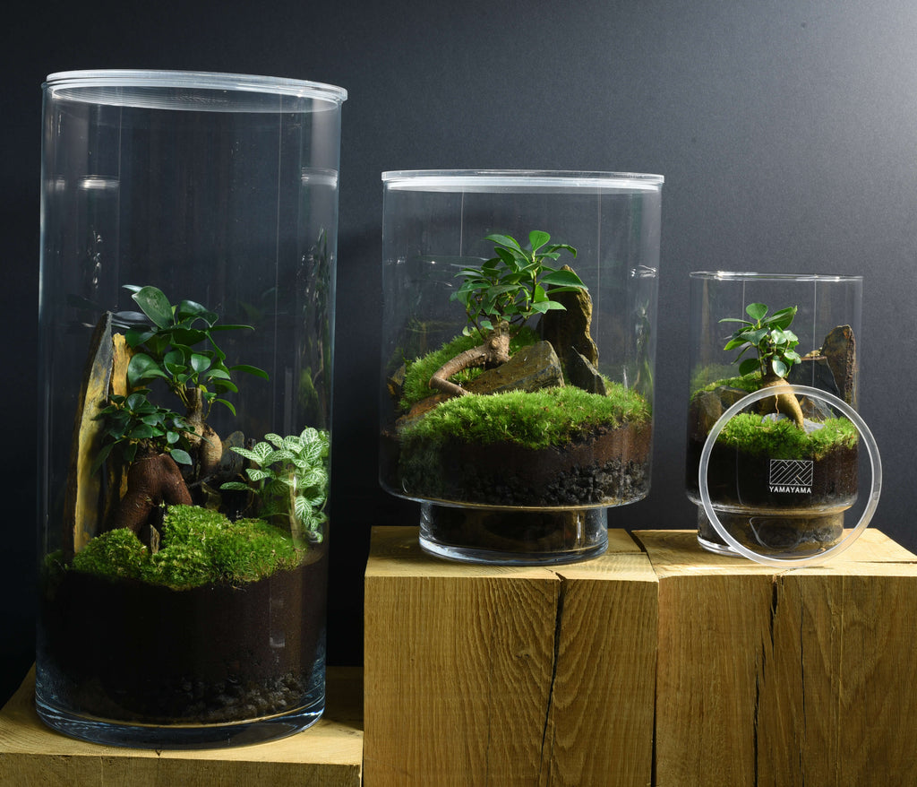 Le kit Iwaki contient deux petits ficus macrocarpa : cette plante est l’une des plus demandée par les acquéreur de terrariums et nous comprenons leur attirance ! Le graphisme des racines de ces plantes est fascinant les transformant en petites sculptures vivantes.