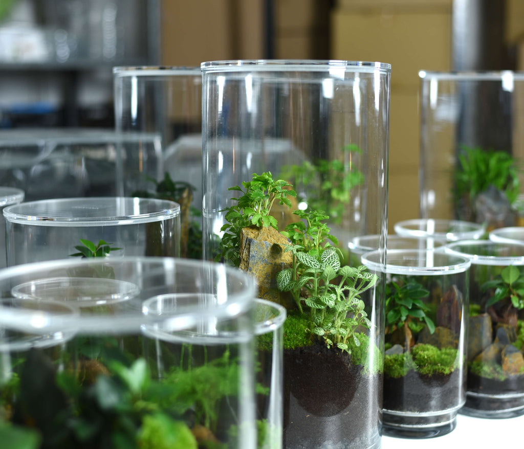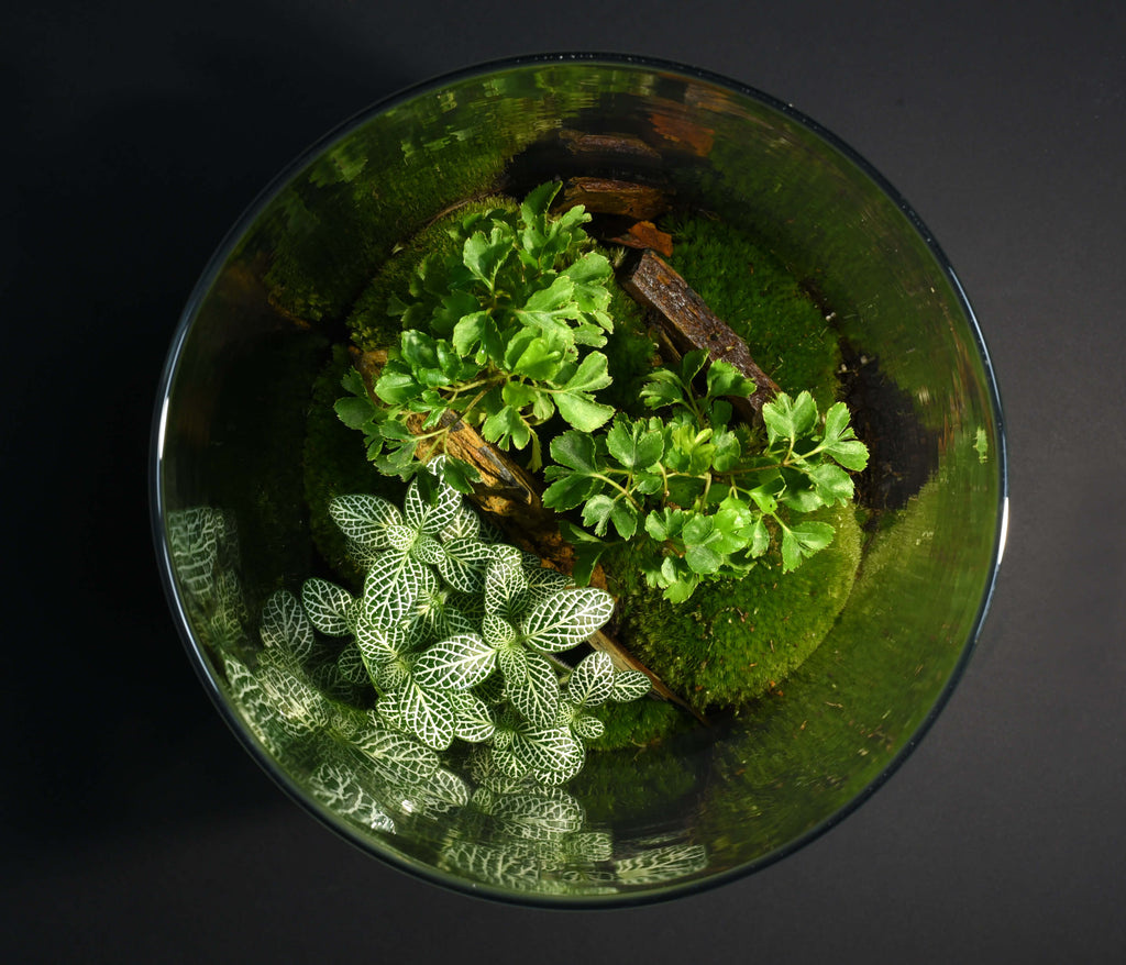 Ces deux plantes affectionnent beaucoup l’atmosphère intérieure humide et tempérée du terrarium et vous aurez le plaisir de les voir grandir rapidement jusqu’à les voir toucher le couvercle ! Ces plantes sont toutes deux faciles à tailler et vous pourrez ainsi facilement leur redonner le gabarit que vous souhaitez.