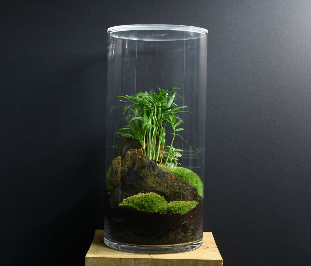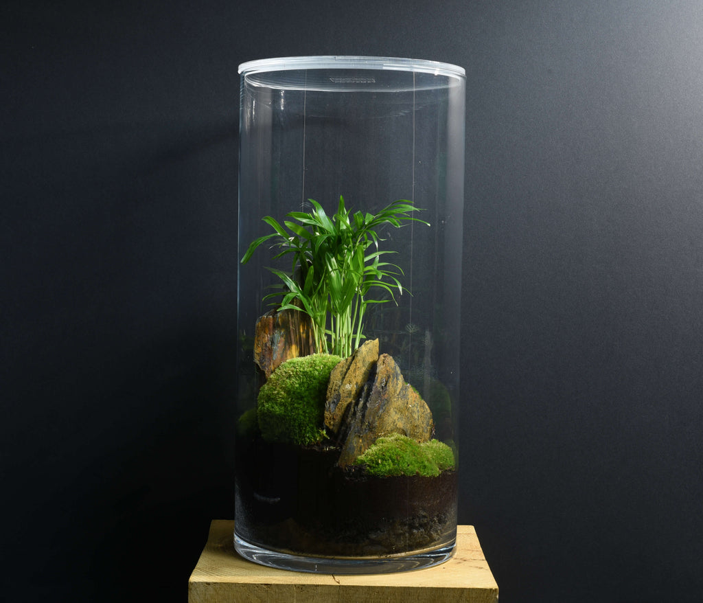 Dans l’atmosphère saturée en humidité du terrarium, le Chamaedorea va retrouver le confort dont il a besoin pour vivre durablement, et va se développer avec une croissance très lente qui ne nécessitera pratiquement pas d’intervention de taille.