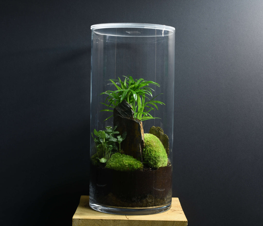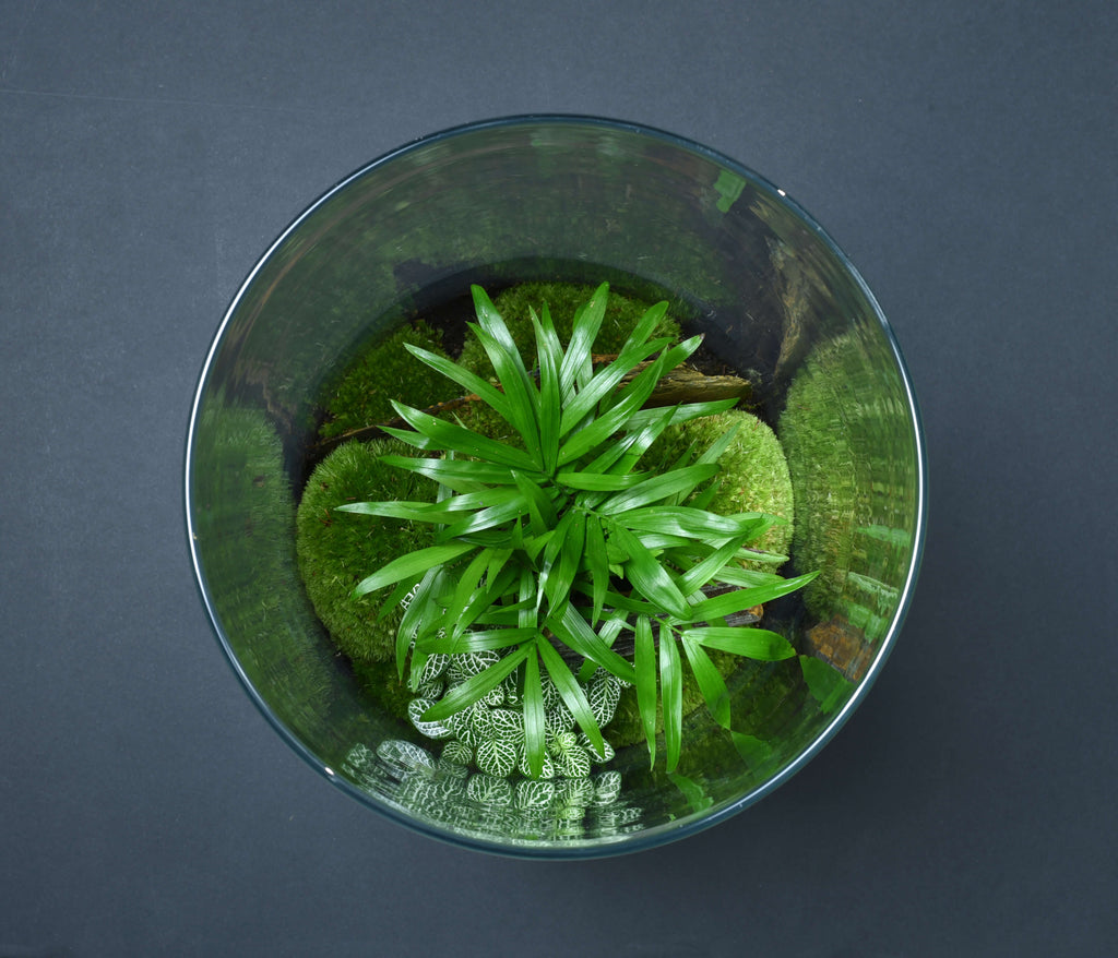 Cette gamme de terrarium est adaptée à une position centrale dans votre intérieur, dans votre salon par exemple avec un éclairage de proximité orienté vers lui, donnant un vif éclat aux nuances infinies de verts de la mousse et des feuillages des végétaux.